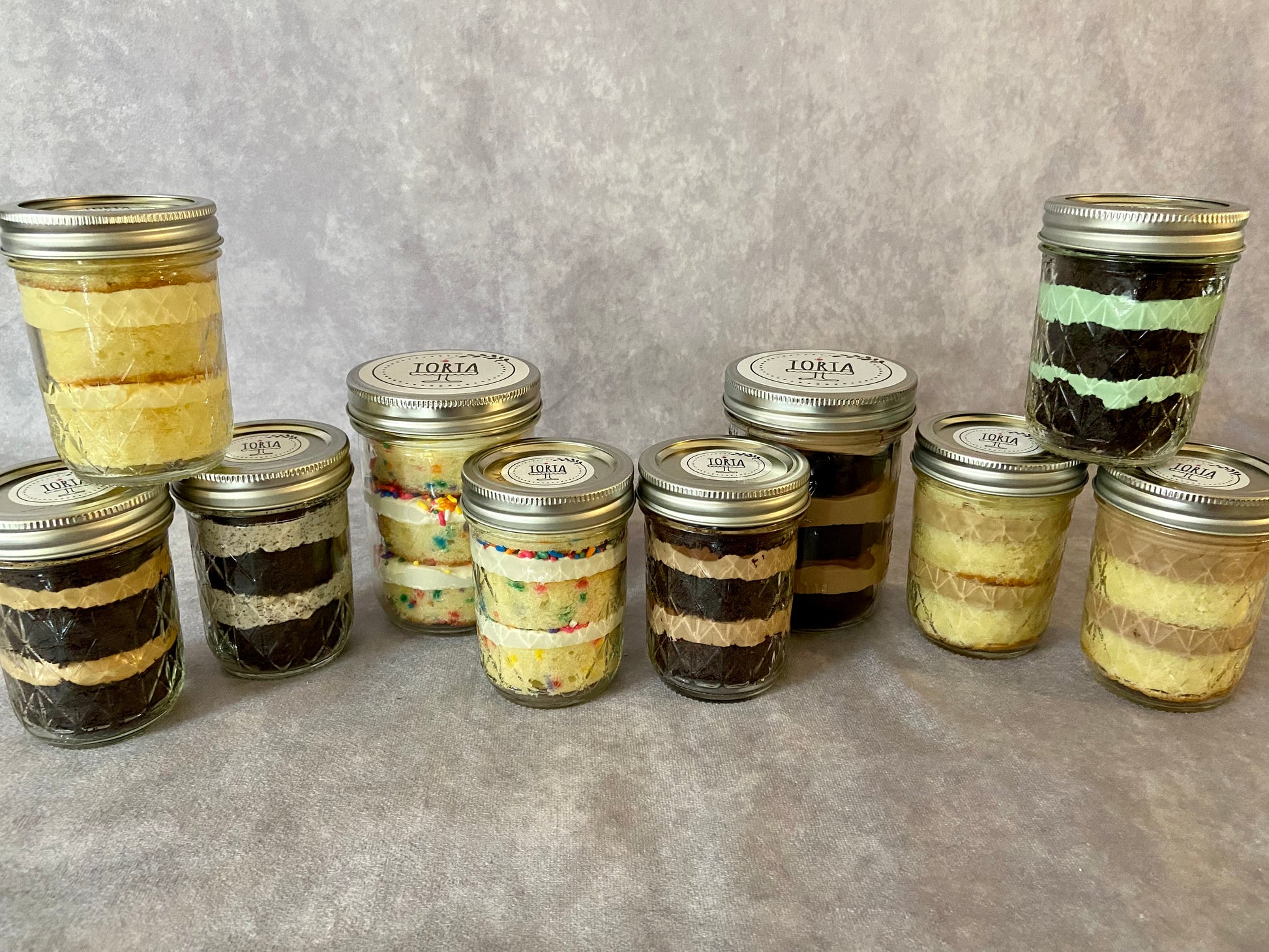 Each jar is filled with moist cake layers and creamy buttercream, stacked to perfection for a sweet treat that’s both fun and convenient.