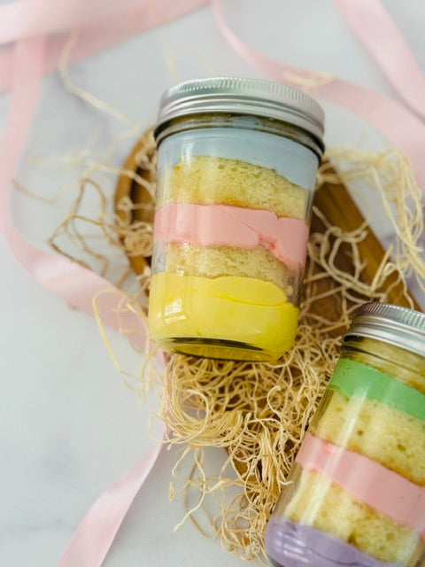 Delight in the charm of our Pastels Cake Jars, where creamy buttercream swirls meet layers of soft pastel-hued cake.
